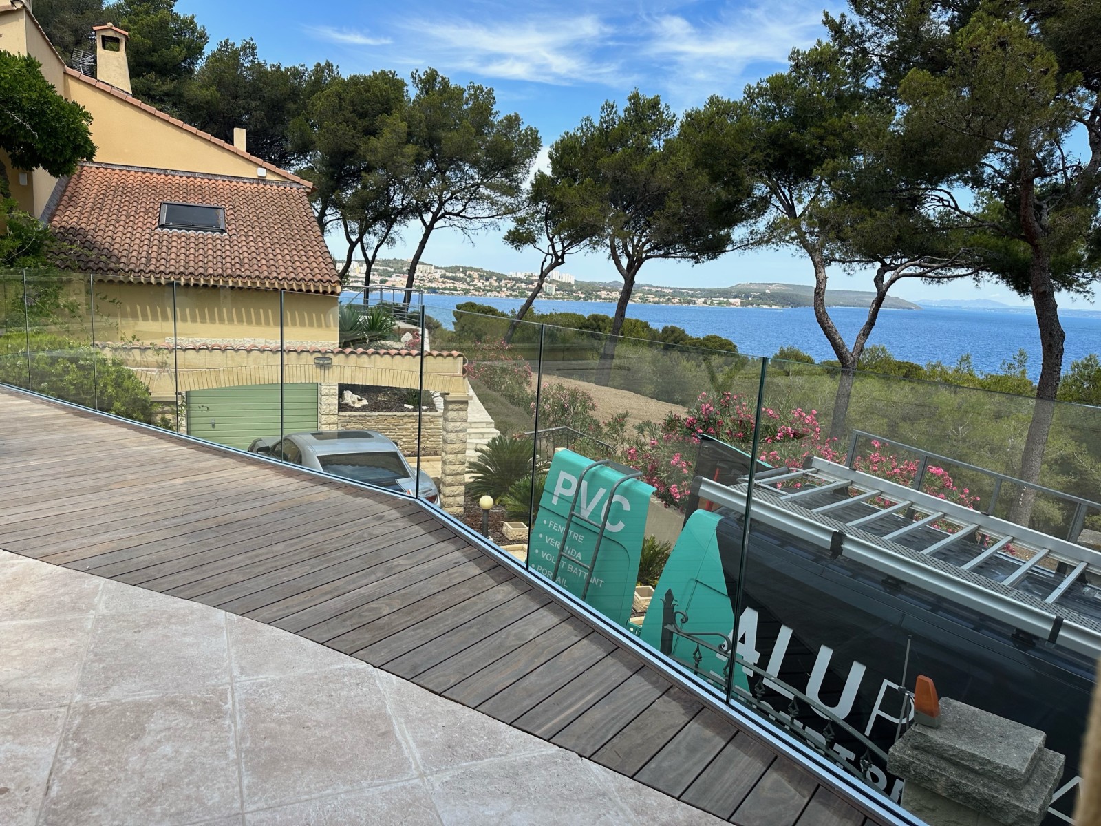Pose de garde-corps vitrées sur une terrasse vue mer à Martigues